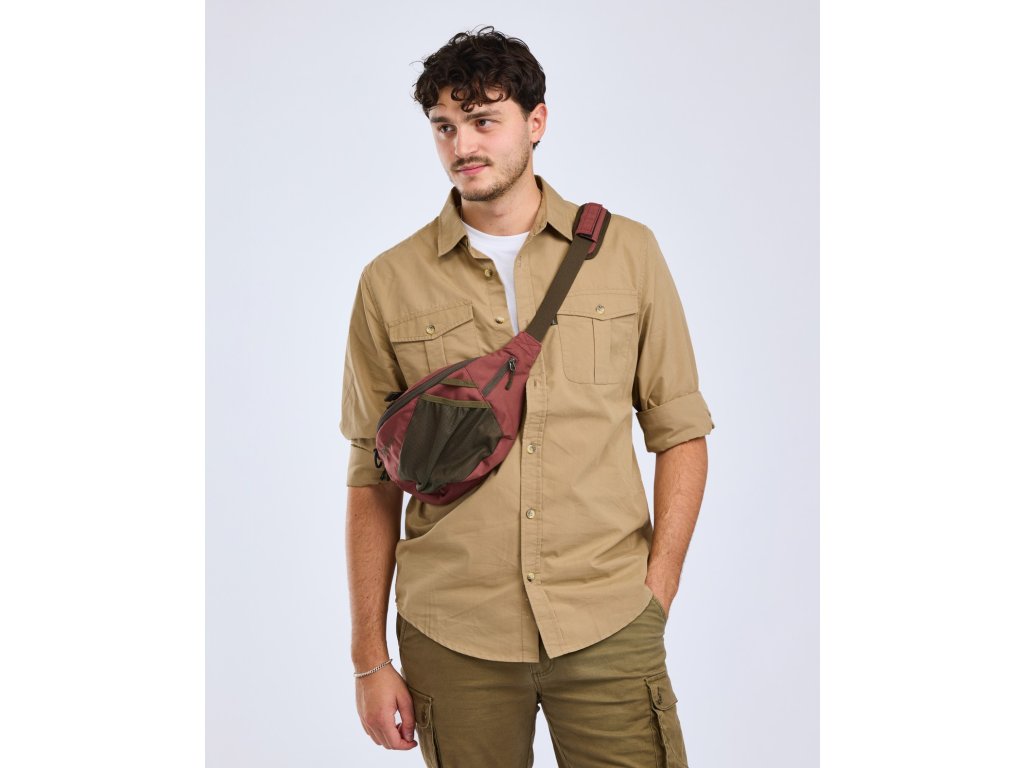 Tato malá taška přes rameno nabízí mnoho funkčních kapes. V té hlavní naleznete všitou menší kapsu se zipem např. na doklady nebo na telefon. V zadní části se pak nachází další podélná kapsa na zip, V přední části pak síťovaná kapsa určená na lahev s vodou. Popruh si můžete lehce přizpůsobit dle vašich potřeb (max 150cm). Taška je ošetřena ekologickou imregnací, takže snese lehký déšť.