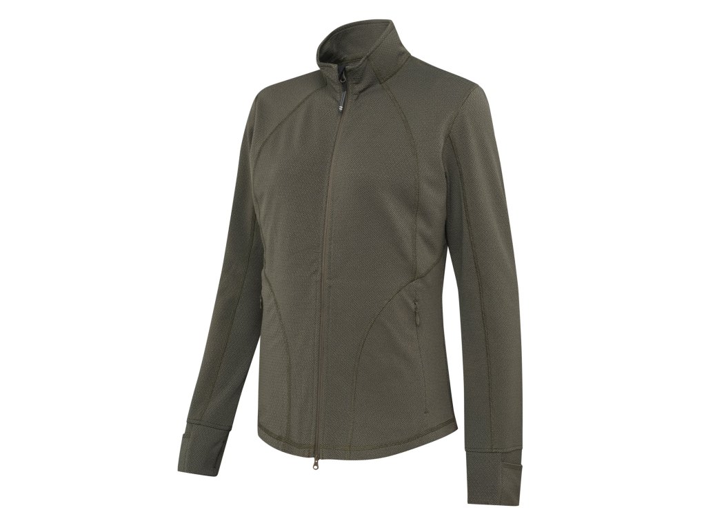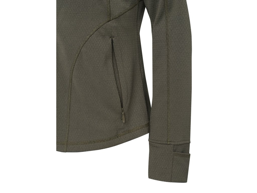 Dámská prodyšná strečová fleecová mikina Suojella vyrobená z lehkého mřížkového fleecu s keramickým potiskem na vnější straně materiálu.