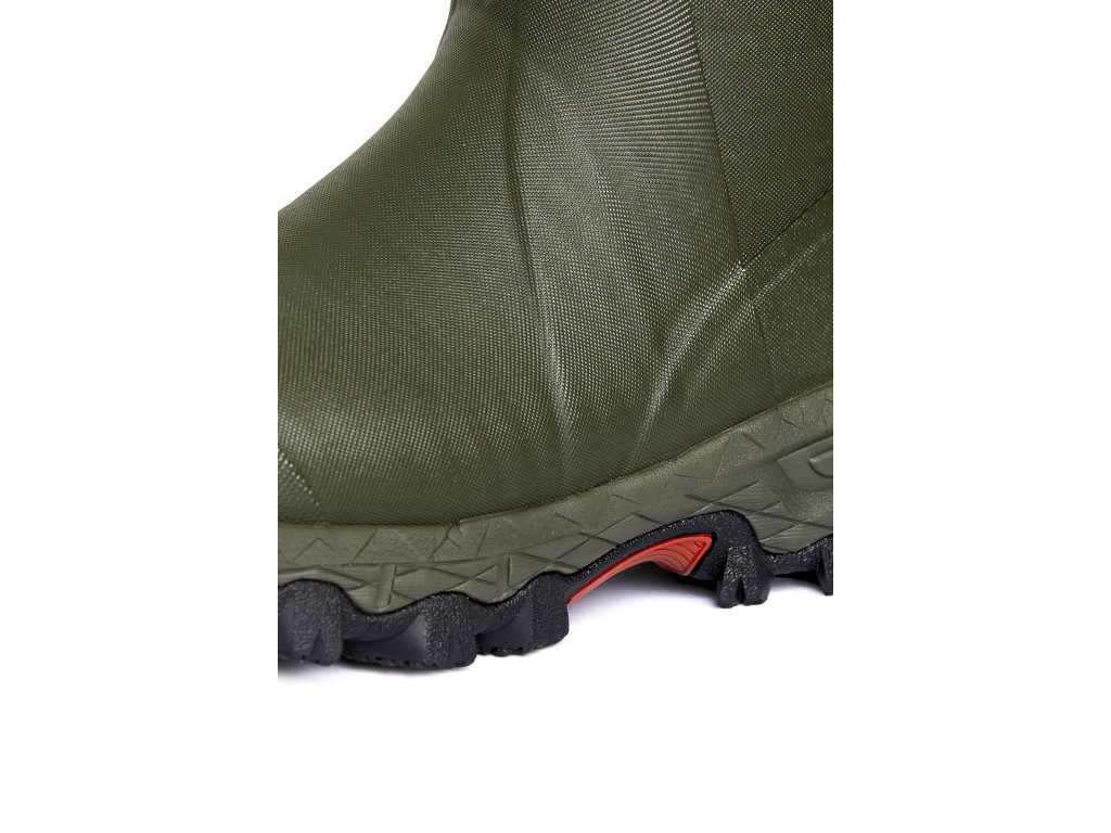 Zesílený Spandexový svršek zajišťuje vyšší flexibilitu a volnost pohybu při zachování pevného a pohodlného usazení nohy. Ať už se pohybujete v hustém lese, v těžkém terénu nebo v hlubokém blátě, tyto holínky poskytují optimální oporu a ochranu i během dlouhých dní v přírodě.