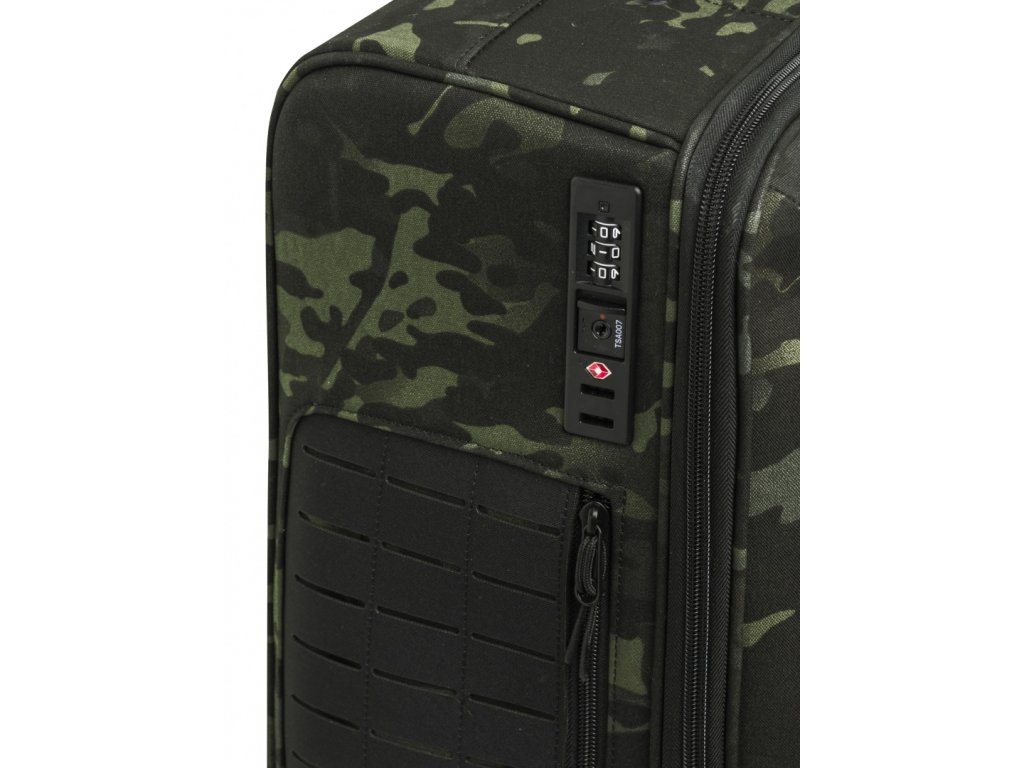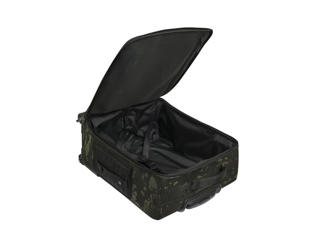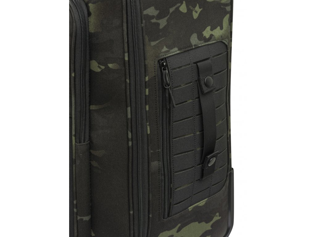 Výsuvná rukojeť nastavitelná do 3 poloh zajišťuje ergonomii a pohodlné ovládání. Polyesterové panely jsou vybaveny MOLLE systémem vytvořeným laserovým řezáním, který umožňuje připevnění dalšího vybavení.