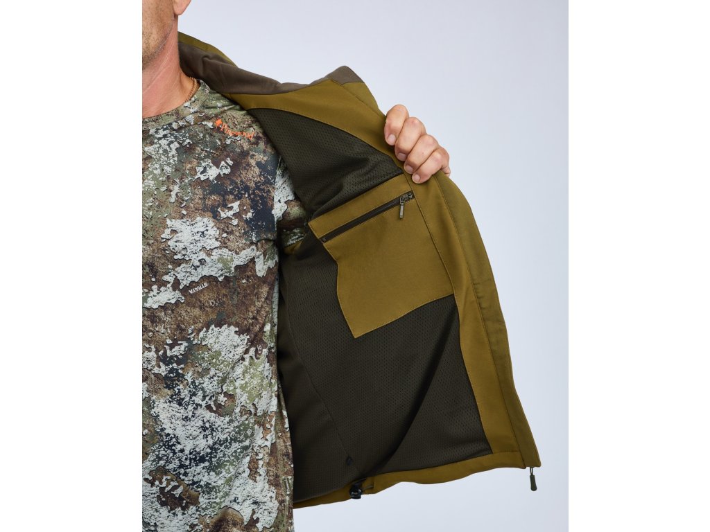 Pružná, tichá a praktická bunda, která kombinuje ochranu proti nepřízni počasí s vysokou prodyšností v designu určeném pro aktivního lovce.