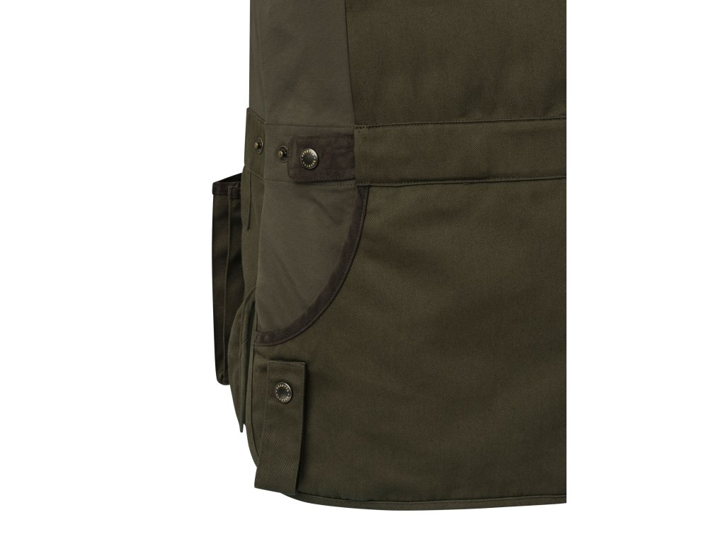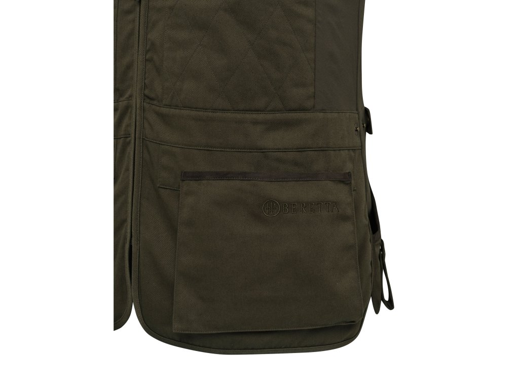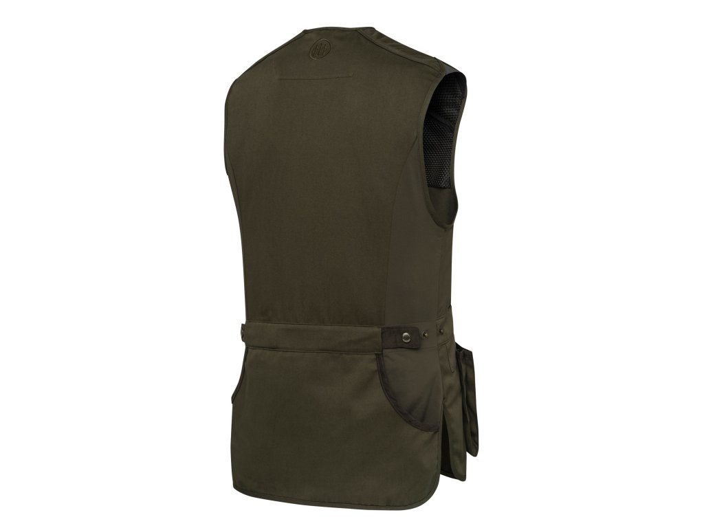 Oboustranná prošívaná výztuha z bavlny zajišťuje dokonalé založení pažby. Elastické vložky po stranách zlepšují přiléhavost vesty. Nastavení pasu zaručuje maximální pohodlí. Přední kapsy na náboje. Zadní část je celá z bavlny a poskytuje dostatek prostoru pro vlastní úpravy (např. výšivky).