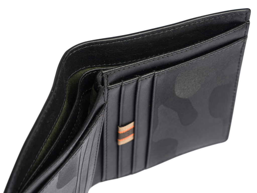 Neformální vertikální dvoudílná peněženka vyrobená ze 100% kůže s polyesterovou podšívkou. Má 3D maskáčový vzor potištěný na kůži.