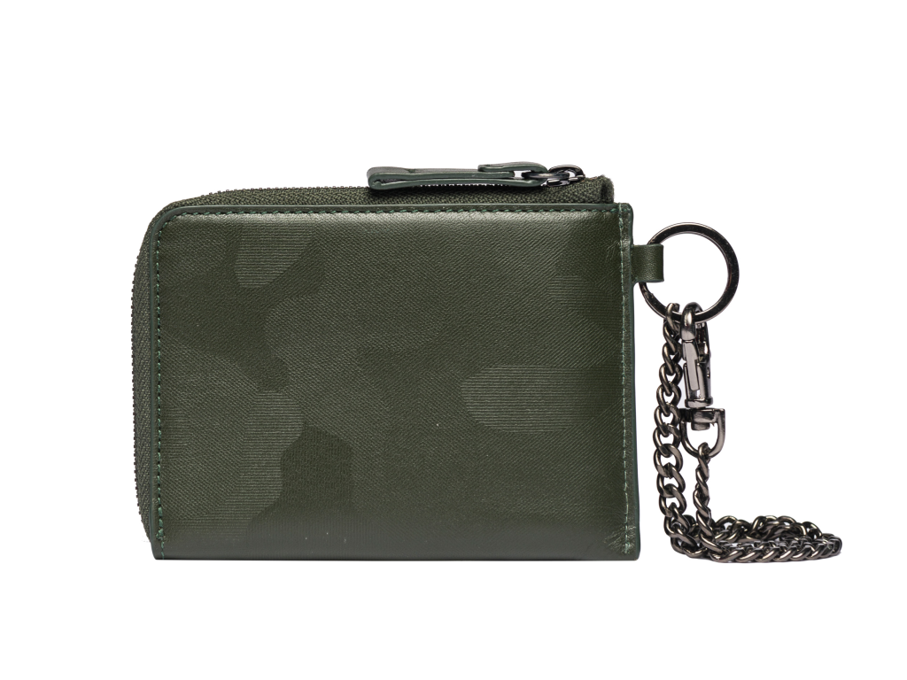 Neformální dvoudílná peněženka vyrobená ze 100% kůže s polyesterovou podšívkou. Má 3D maskáčový vzor potištěný na kůži.
