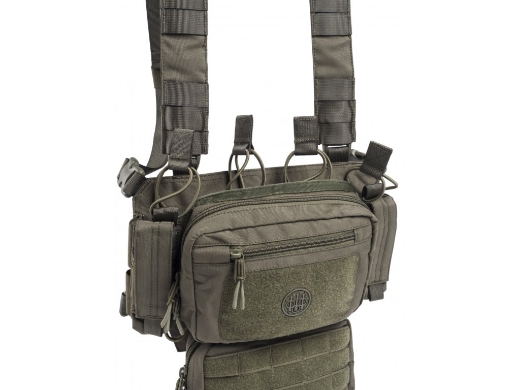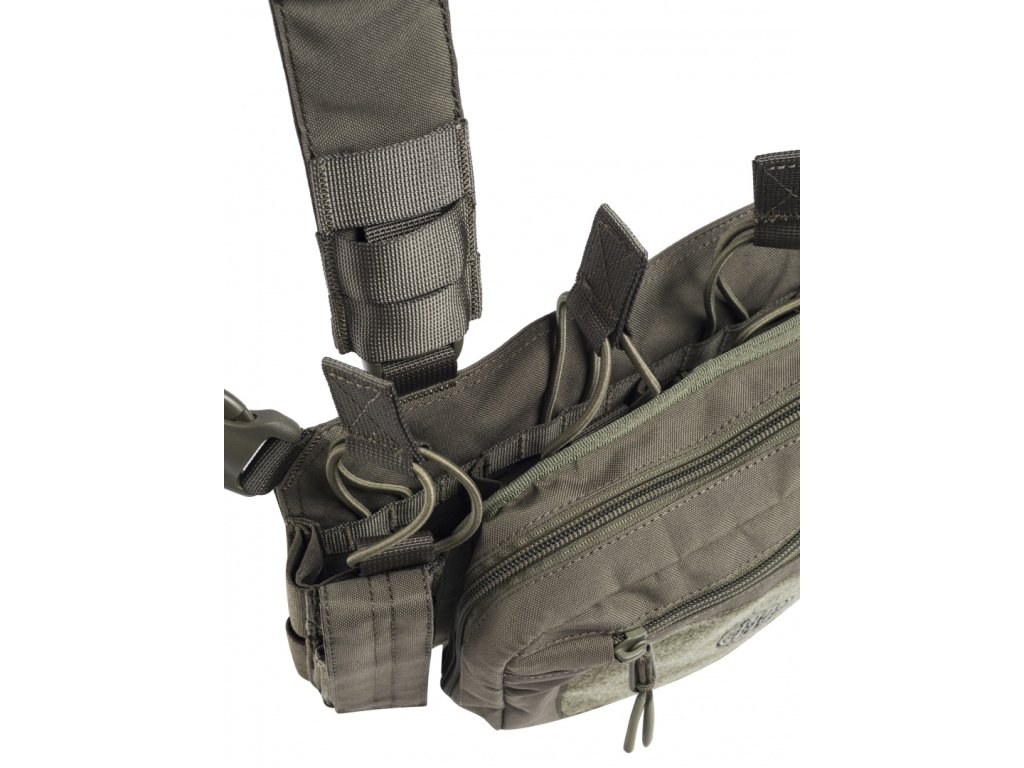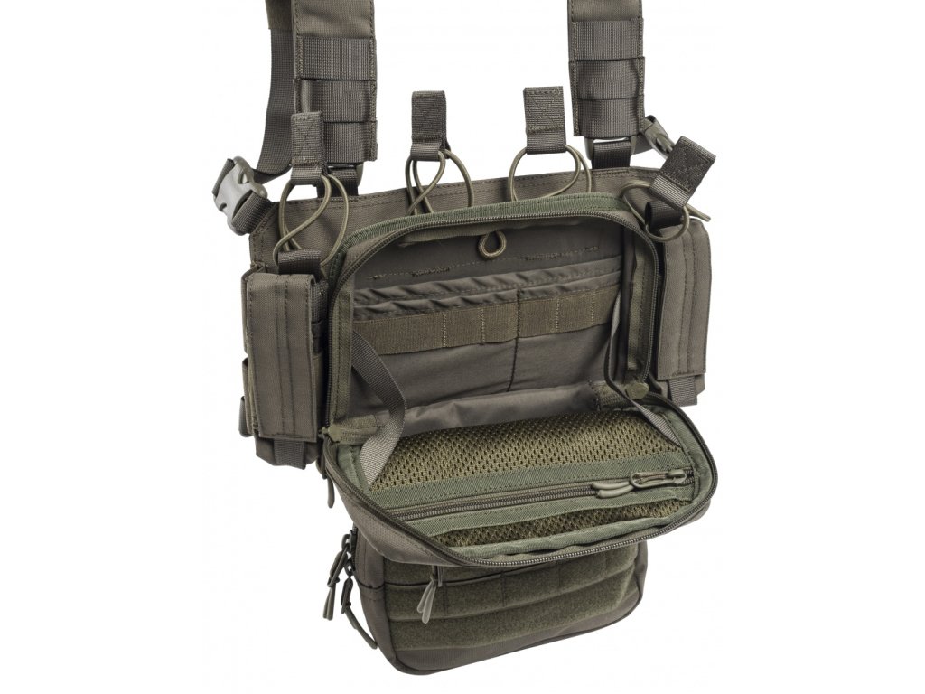 Rozhraní MOLLE umožňuje uživatelům přizpůsobit chest rig podle vlastních potřeb. Na přední straně se nachází velká víceúčelová kapsa a ve spodní části odnímatelná kapsa. Chest rig je vybaven dvěma nastavitelnými upevňovacími popruhy různých délek, které zajišťují optimální přizpůsobení.