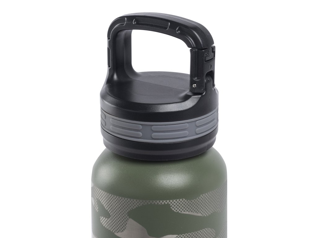 Izolaci zajišťuje dvoustěnná konstrukce s vakuovou izolací, která chrání nápoj před vlivem okolní teploty. Víčko s vakuovým těsněním poskytuje další úroveň izolace. Ve víčku je také praktická integrovaná karabina pro snadné připevnění na batoh. Prášková povrchová úprava a laserové zpracování zajišťují vysokou odolnost a dlouhou životnost povrchu.